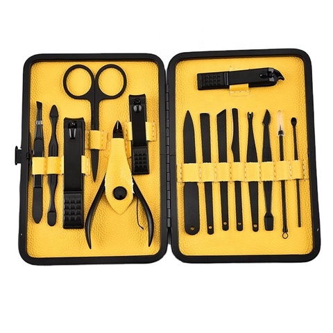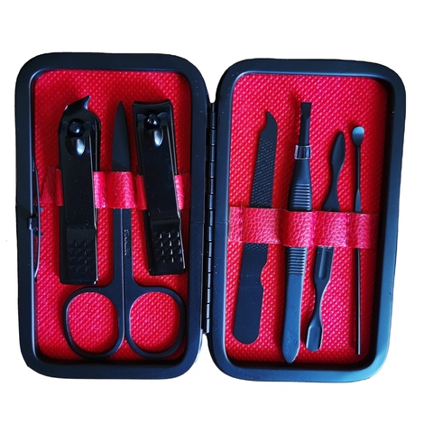 Juego de manicura, cortaúñas, estuche con logotipo del cliente, acero inoxidable, 2024, superventas, juego de 7 piezas de Color negro,